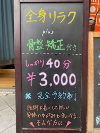 骨盤矯正付き、全身リラクゼーションコースのご案内です!!